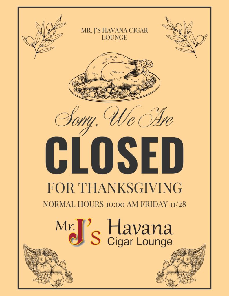 Mr. J’s is closed for Thanksgiving and will re-open at normal hours at 10:00am on Friday 11/28.